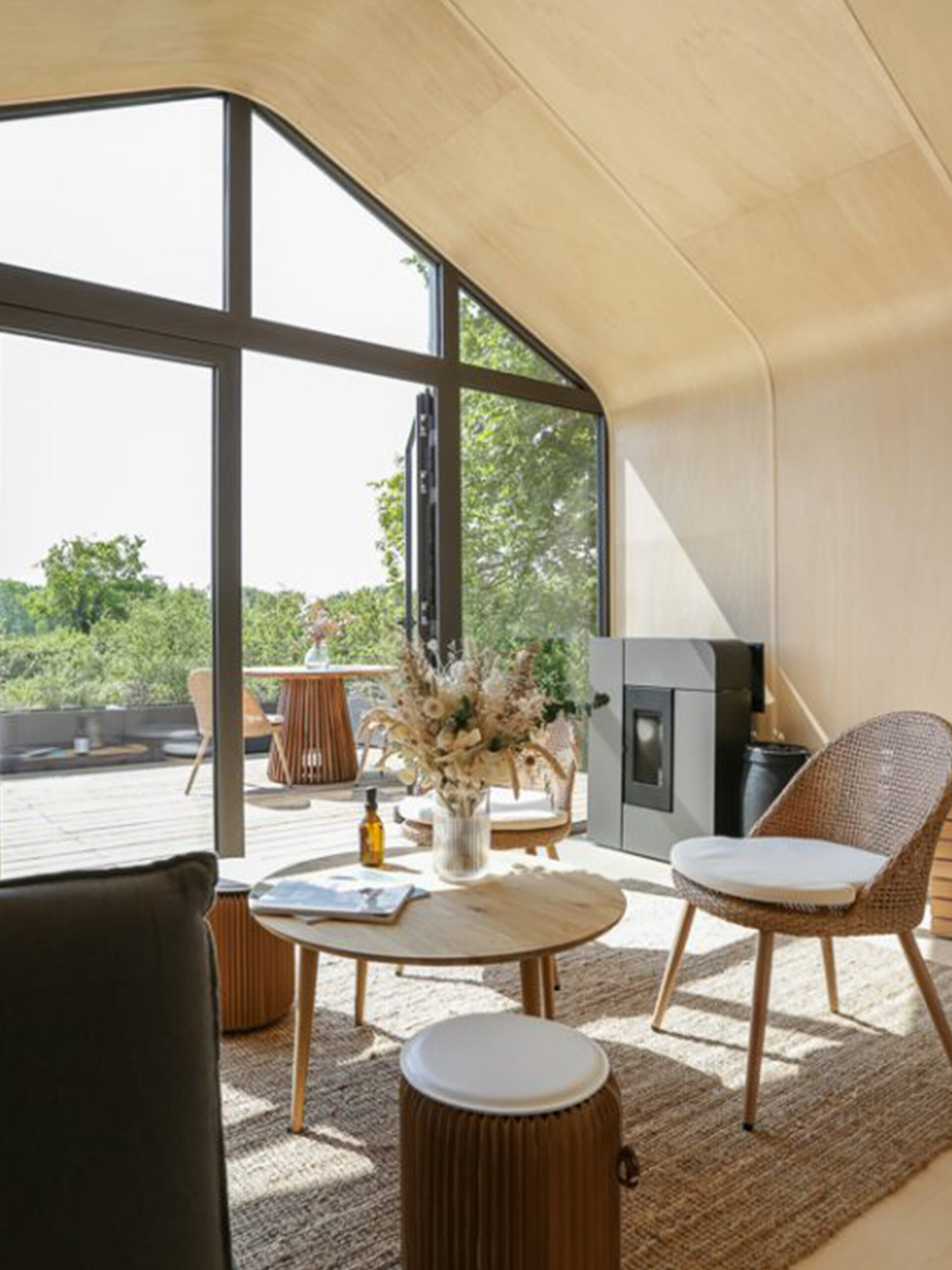 Nos lodges ou Tiny écoresponsables sont conçus à partir de matériaux durables pour s’intégrer au site tout en conservant modernité et intimité.